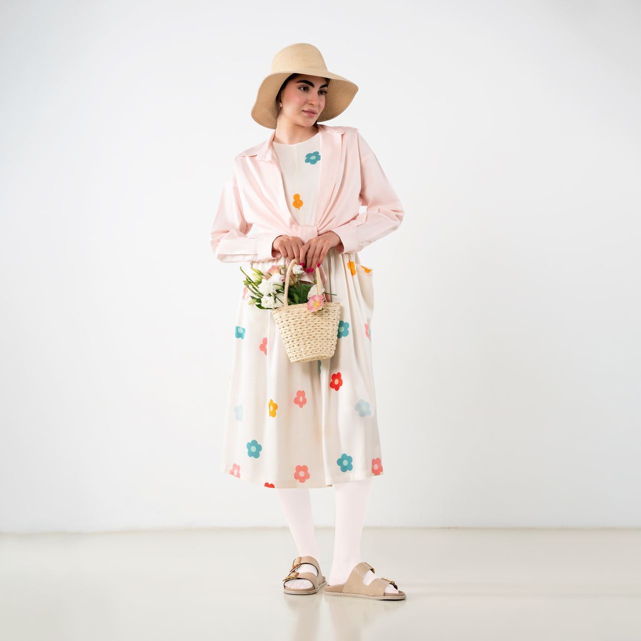 پیراهن ساحلی یقه گرد آستین حلقه ای دامن چین دار